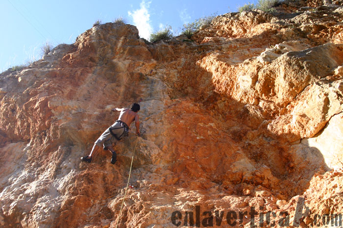 Las apariencias a veces engañan positivamente. Esta vía resulta ser mucho más bonita de lo que parece desde el pie de vía. Merli encadenandola entre sol y sombra.