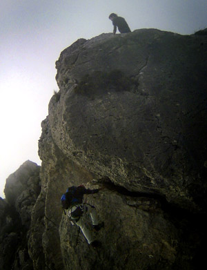 El paso más comprometido de la cresta... no es difícil pero es muy aereo.