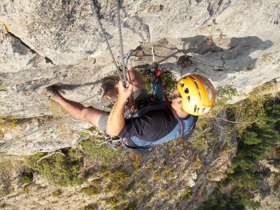 Ramón Cadalàs, uno de los creadores de esta hermosa vía, dando los últimos retoques en "El río que nos lleva"