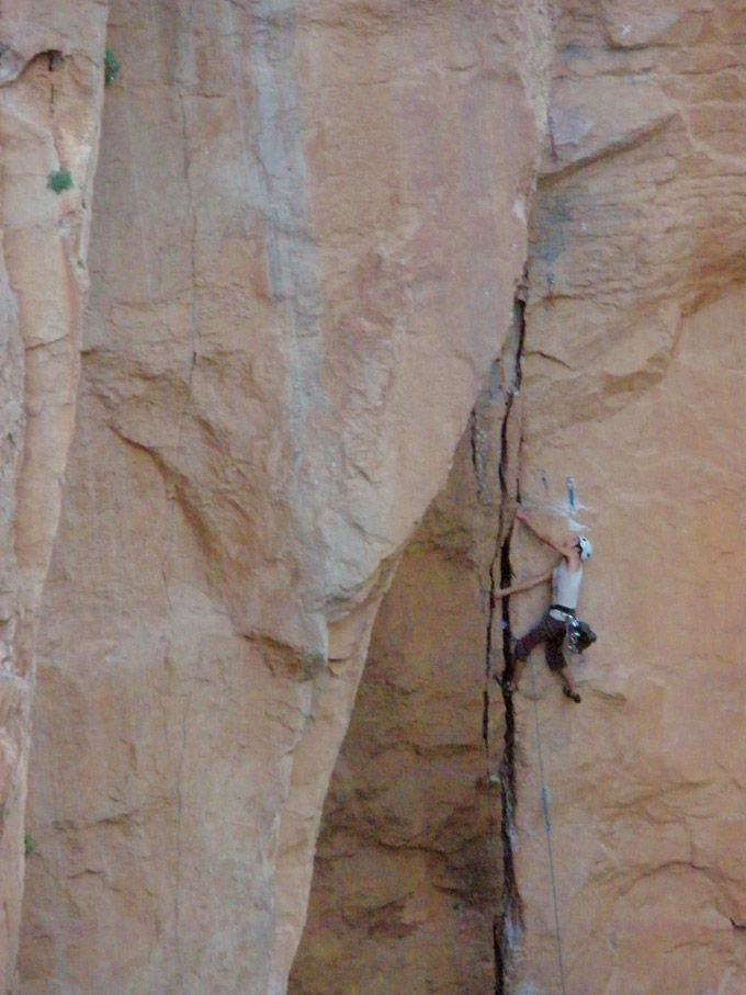 Merli se encarga de la primera repetición encadenada poco después de que Ramón y Javi acabaran de equipar la vía.