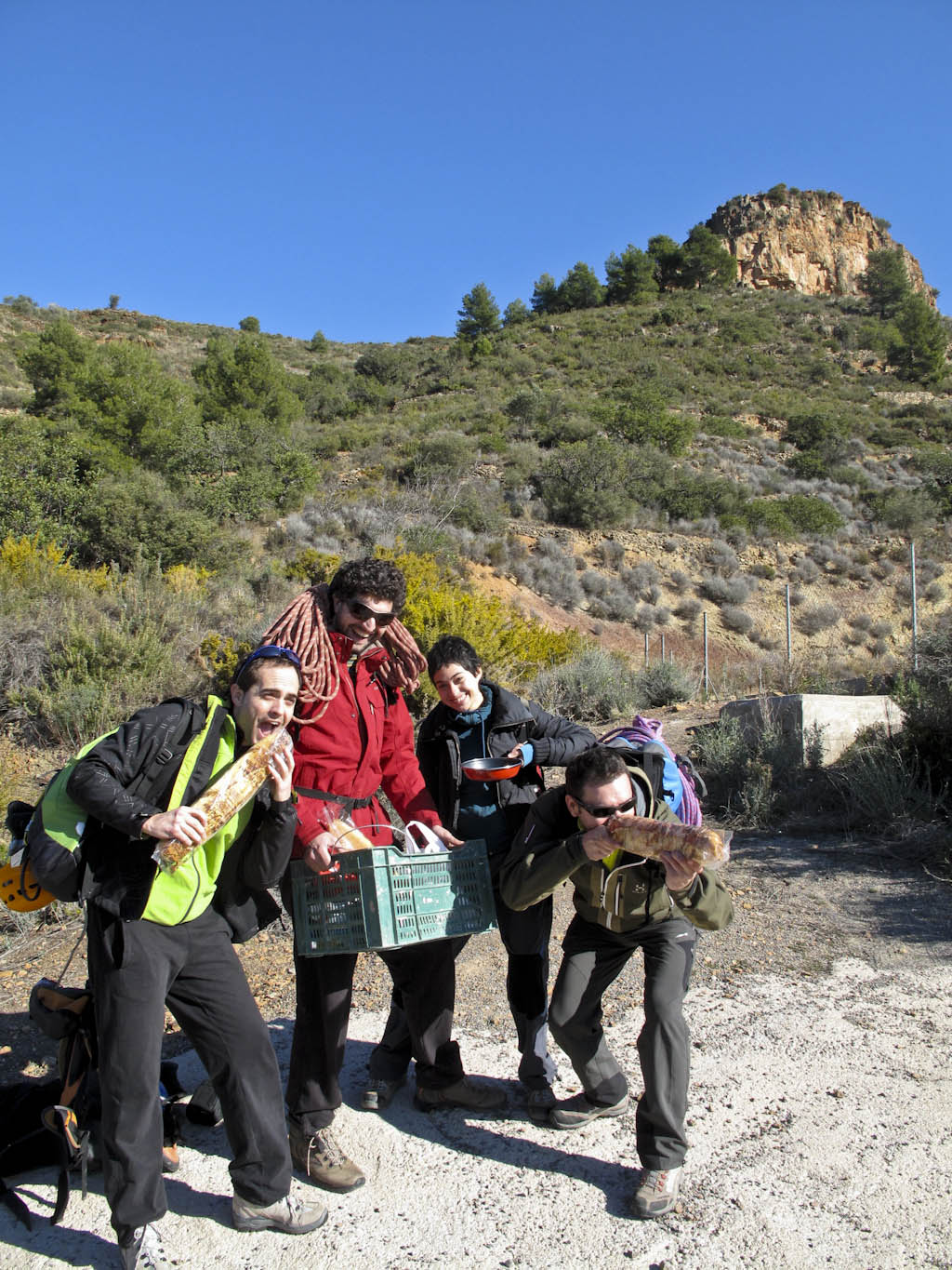 Ni cortos ni perezosos, el trio de las risas decide subirse unas longanizas, una morcillitas y unos choricitos... sartén y hornillo de inducción... a tope con la cope, comida ligera para un escalada ligera... ¡¡¡Agarrate fuerte Niki Lauda!!!