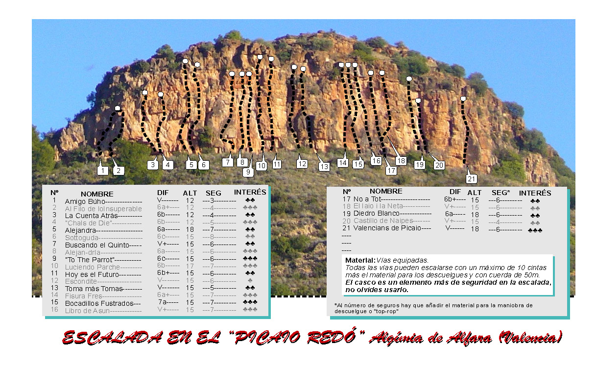 Reseña de la escuela y sector del Picaio Redó (Algimia d'Alfara)