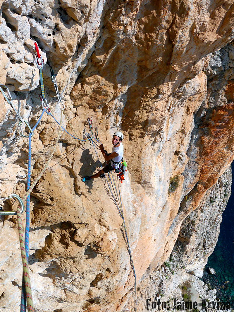 Desplome del 8º largo de la vía Espacio Libre 6c/A2 310m.