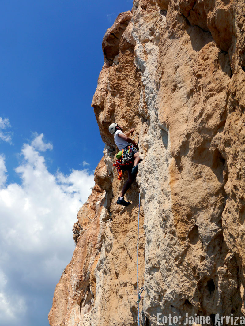 Merli escalando el séptimo largo de la vía Espacio Libre 6c/A2 310m.