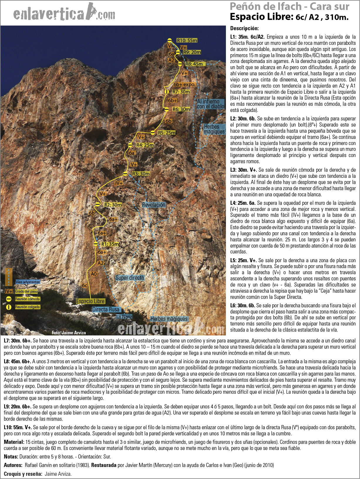 Reseña de Jaime Arviza de la vía Espacio Libre (6c/A2 310m.) en el Peñón de Ifach.