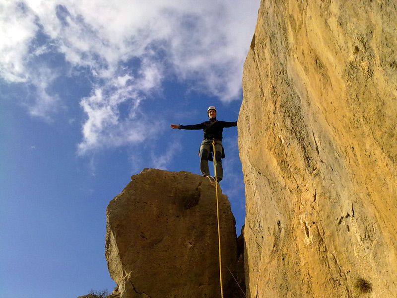 Sobre el gran bloque que hay en la base del espolón Aristóteles.