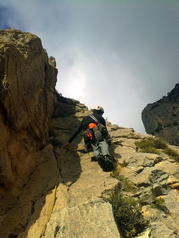 Los primeros metros de este largo, una vez en el espolón, parecen tumbados pero te hacen escalar.