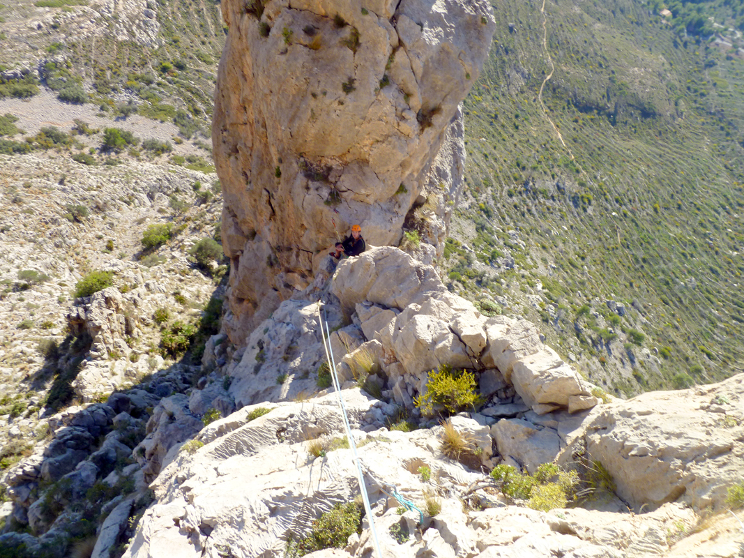 Jose en el pequeño collado colgado donde empieza la cresta Pepsi.