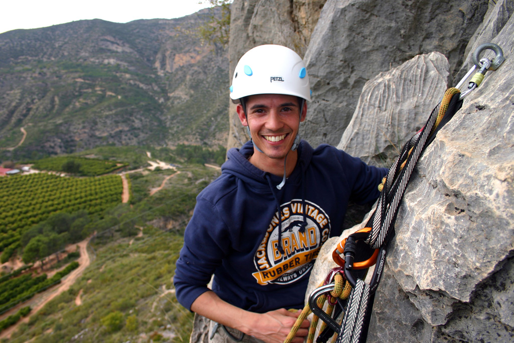 Ese Goooon, en su primer día de escalada y ya colgado de una reunión. Curtiendo desde el primer momento.