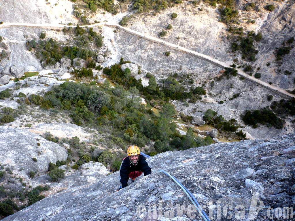 Emili disfrutando de su primera vía larga.