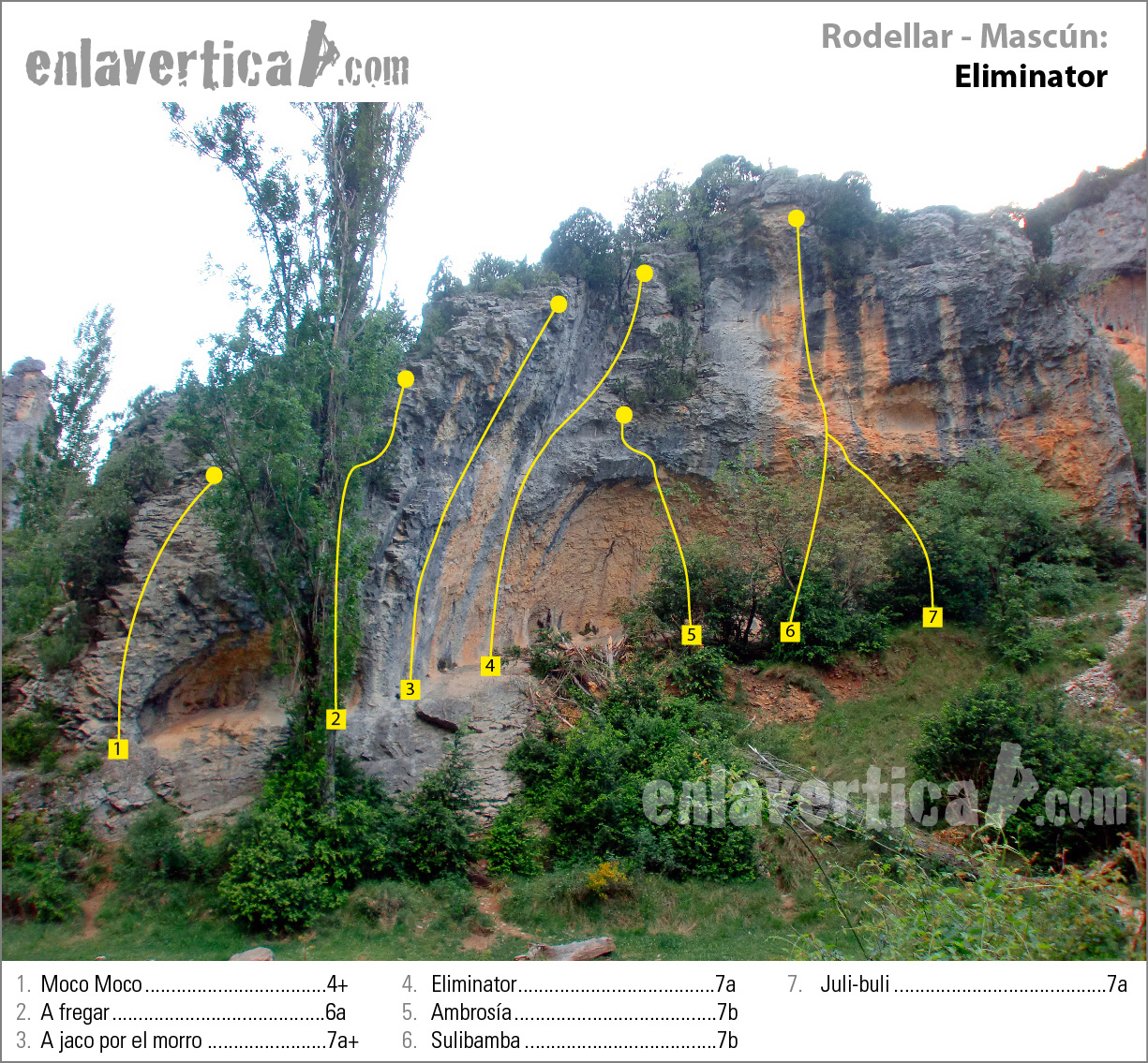 Reseña del sector Eliminator en la zona de escalada del Mascún (Rodellar)