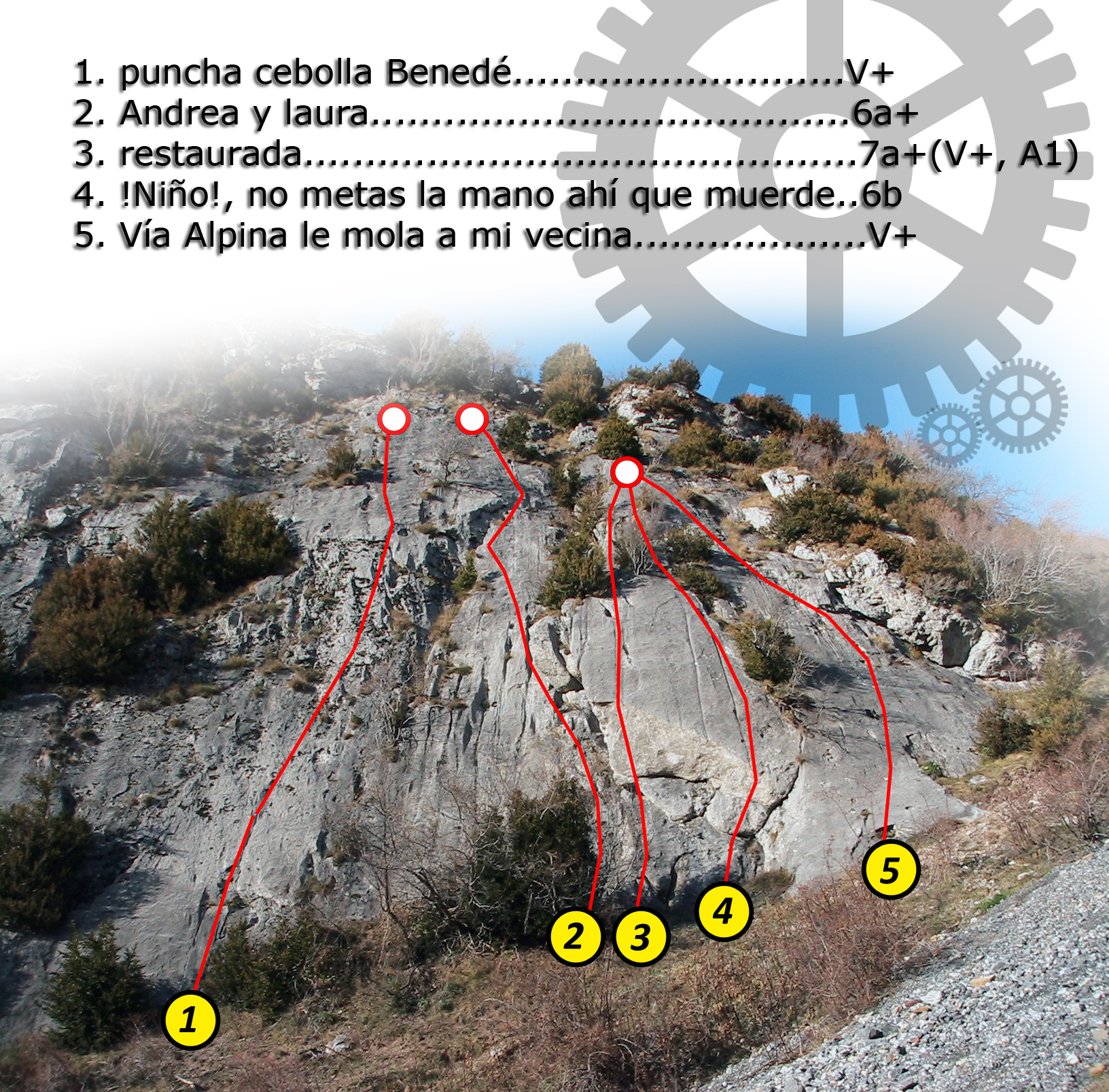 vías de 26 mts, 10 cintas express son suficientes, hay posibilidad de proteger con nuestros propios seguros, friends y empotradores