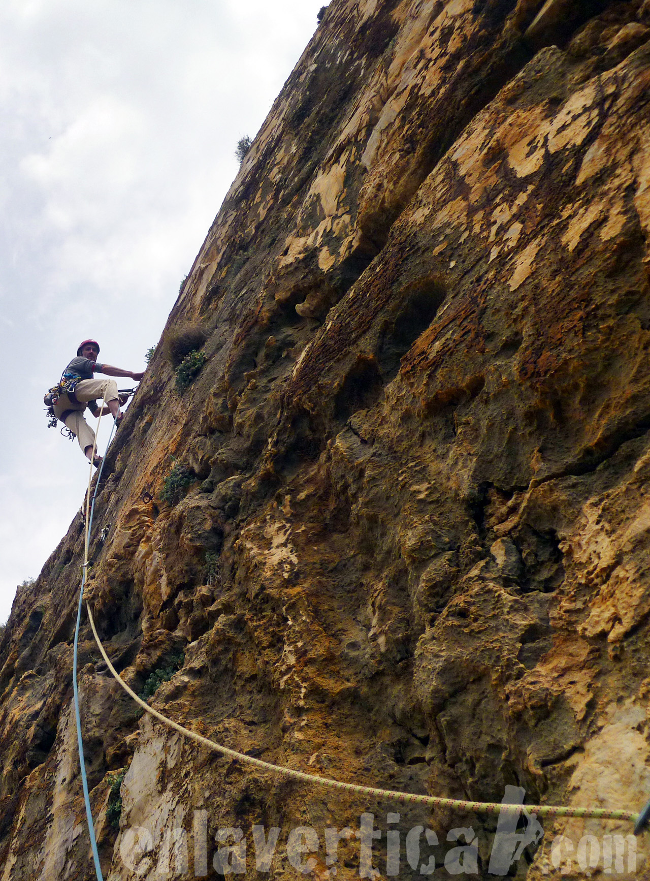 A Javi le toca la placa del último largo, donde la roca cambia radicalmente.