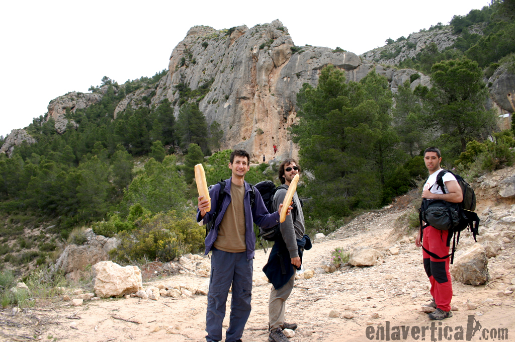 De izquierda a derecha Merli, Solete y Camarasa con ganas de disfrutar de un buen día de escalada en Peña Rubia.