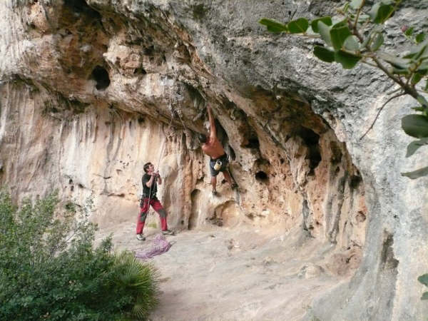 Via algo explosiva de tres o cuatro chapas(bloque)bastante desplomada,de agujeros y algo de chorrera al principio.divertida