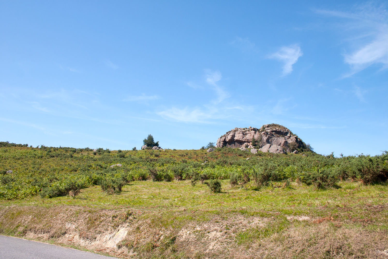 La roca de Pikoketa, situada en lo alto de una colina, envuelta por pastos y monte bajo por donde pastan libremente algunos caballos. Un lugar muy agradable con unas bonitas vistas donde pasar un buen día de escalada al sol.