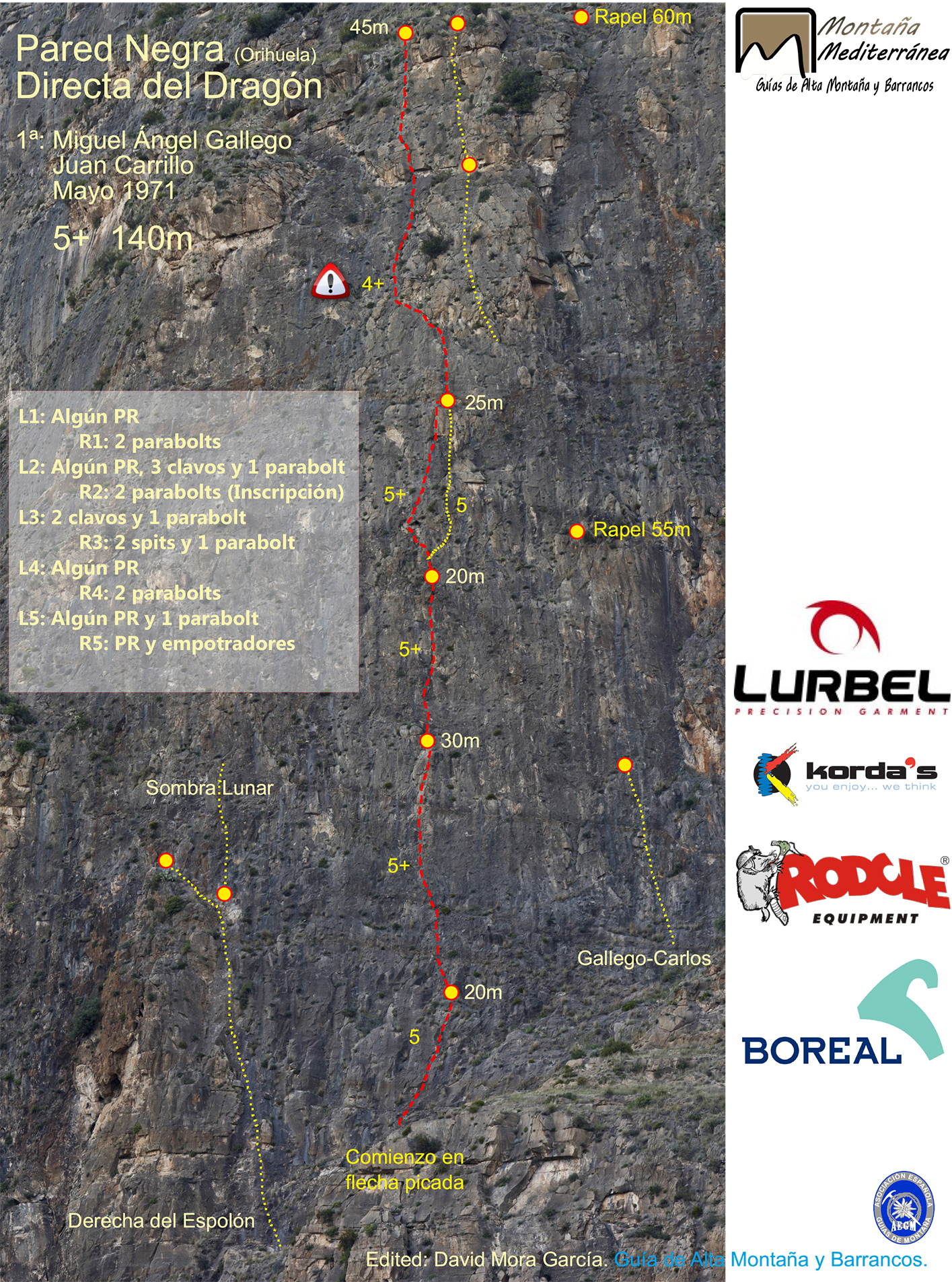 Reseña sobre fotografía a color de la vía clásica Directa del dragón a la Pared Negra.