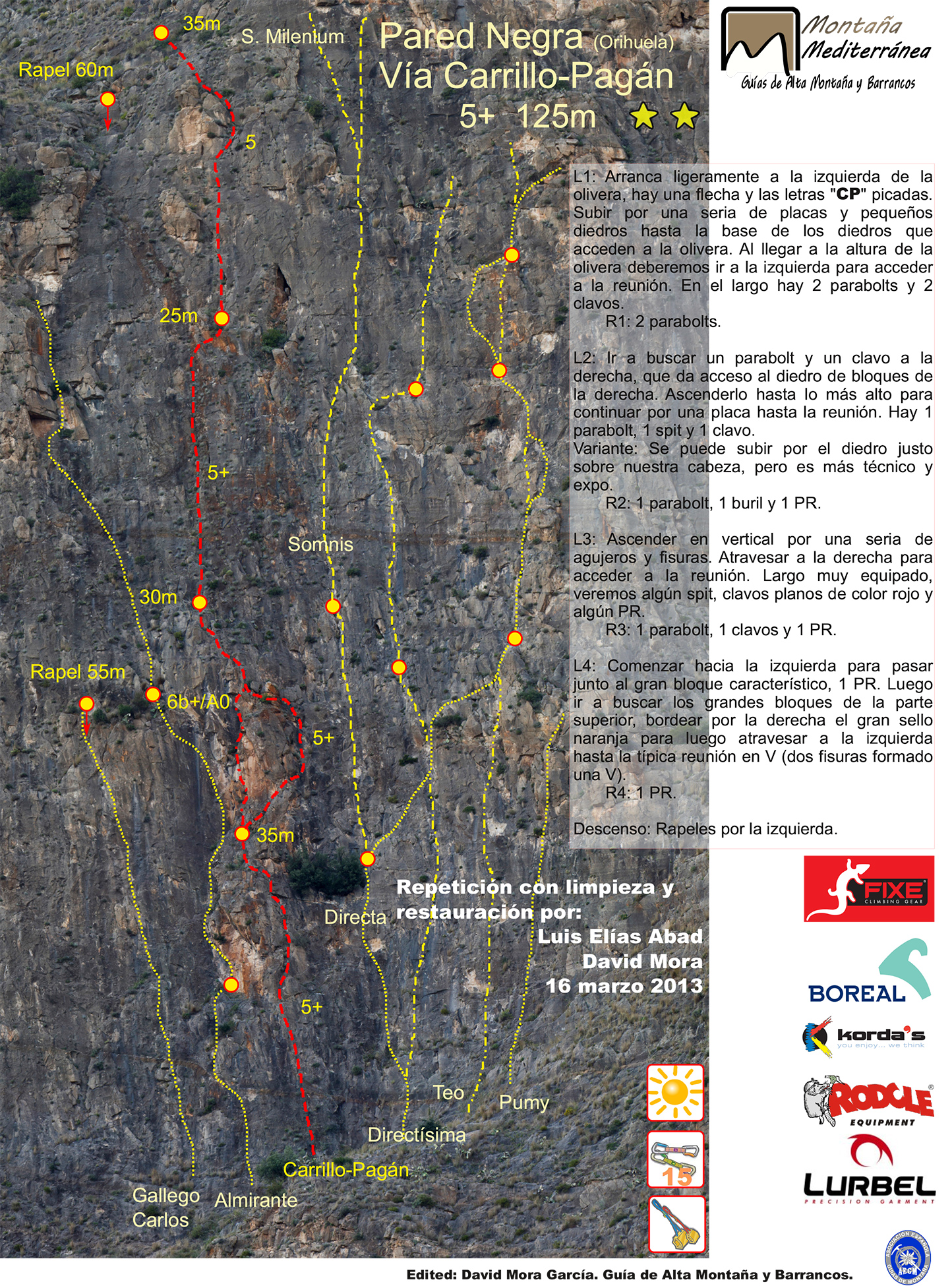 Reseña sobre fotografía a color de la vía Carrillo-Pagán a la Pared Negra de Orihuela.