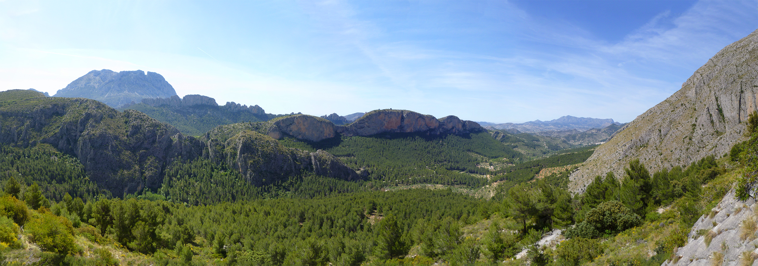 Al fondo a la izquierda el Puig Campana y en segundo plano las paredes del barranc de l'Arc.