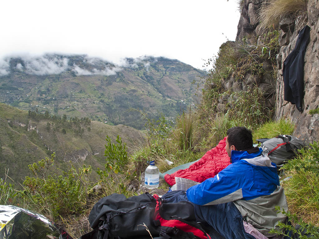 Vivac en a los pies del sector Tranquiqui. Desqués de una dura noche de lluvia y piedra... un café y a la roca