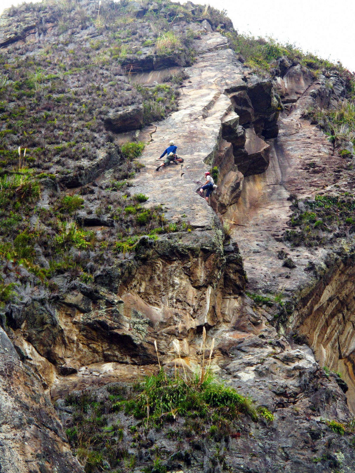 A punto de llover, los compañeros chilenos atentan el último largo de la vía Qué chucas me ves.