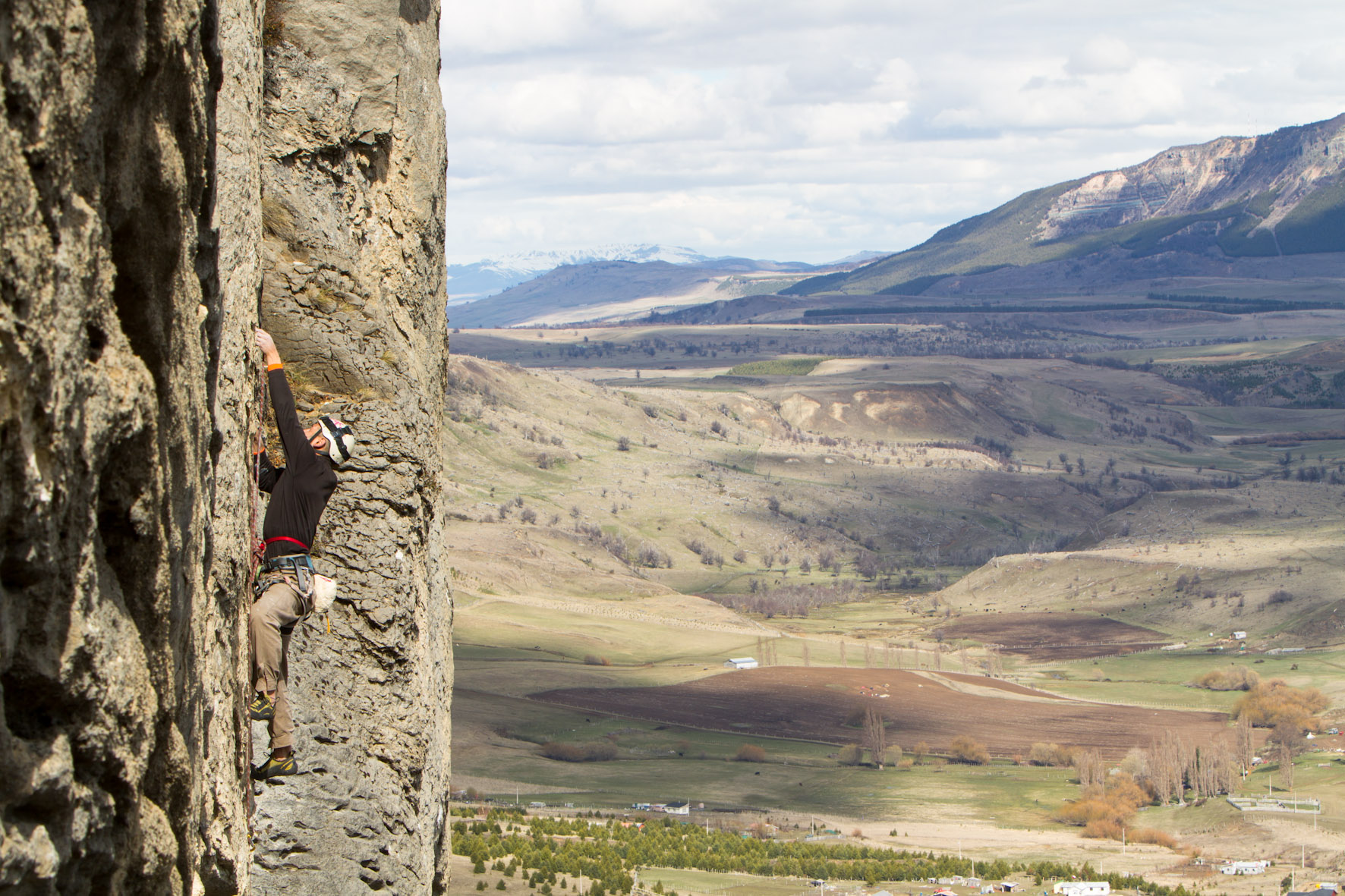 Javier escalando en la Gran Muralla de Coyhaique, Chile