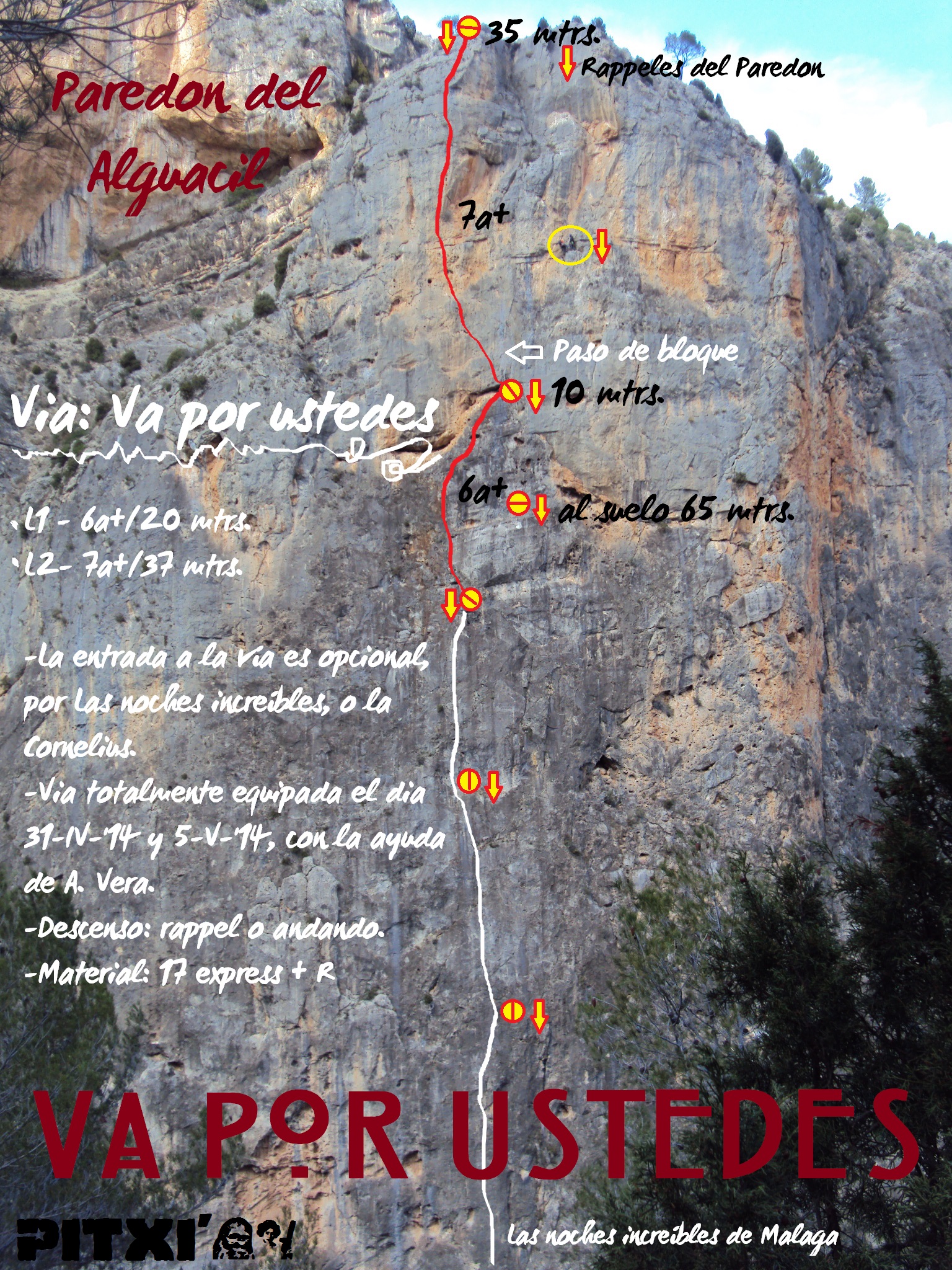 Reseña sobre fotografía a color de la vía Va por ustedes al Paredón del Alguacil.