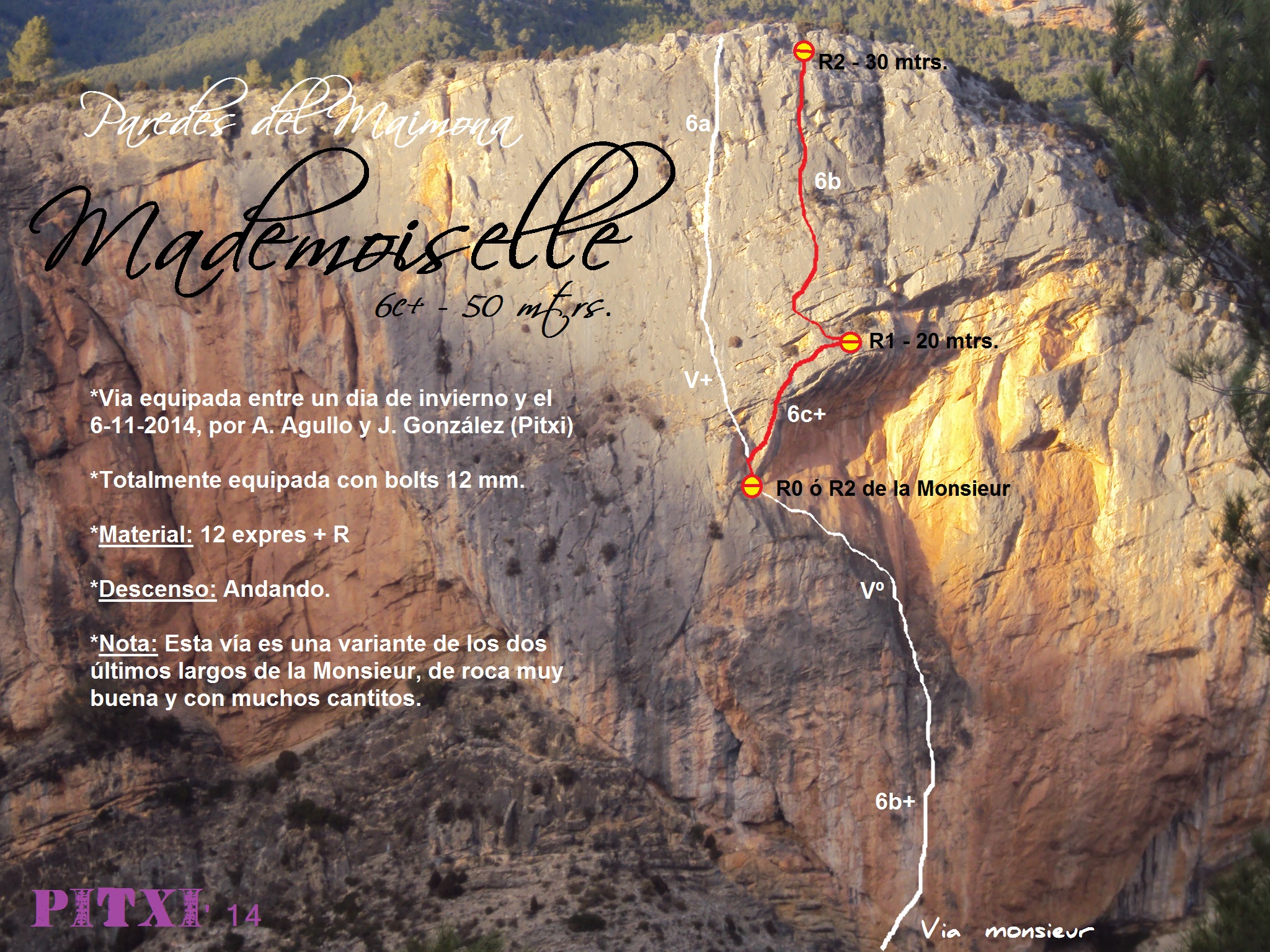 Reseña sobre fotografía a color de la vía Mademoiselle en las paredes de arriba de la Maimona.