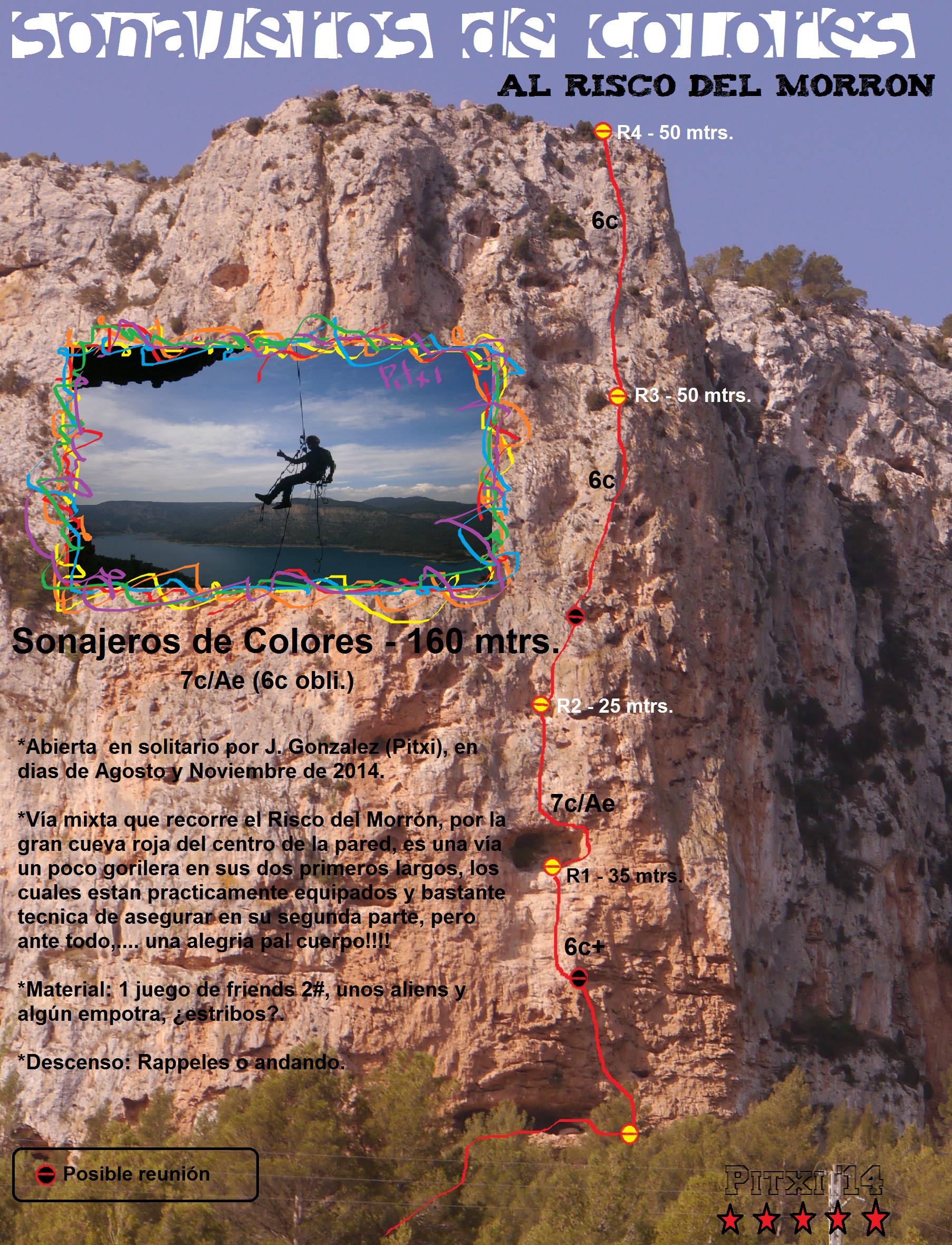 Reseña sobre fotografía a color de la vía Sonajeros de colores, al Risco del Morrón, en Montanejos.