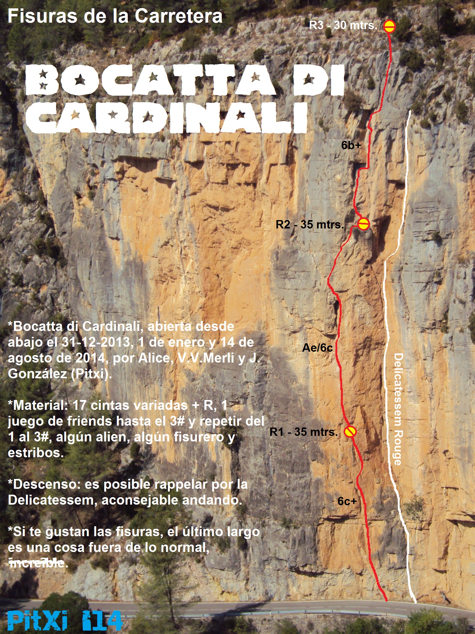Reseña sobre fotografía a color de la vía Bocatta di Cardinali, en las Fisuras de la Carretera, Montanejos