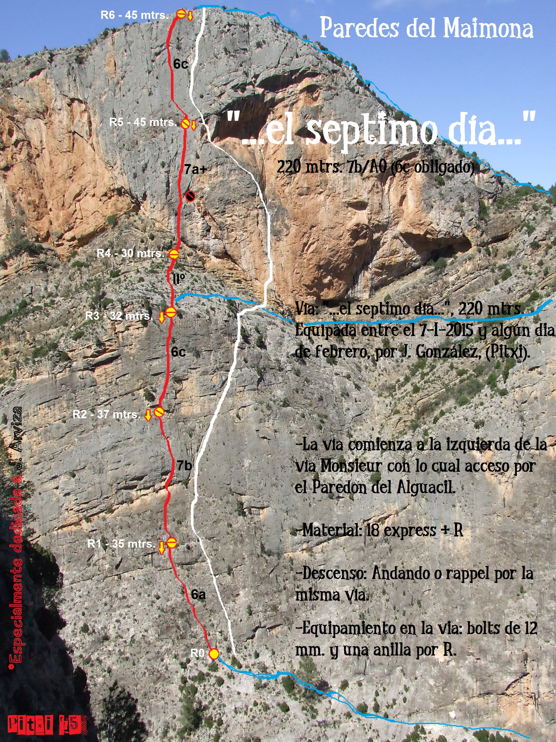 Reseña sobre fotografía a color de la vía El séptimo día, Baranco de la Maimona, Montanejos