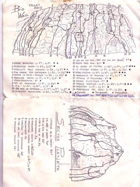 Sectors de Big Wall (llargs de paret) i Platjeta (sector d'esportiva molt recomanable en tots els aspectes)
