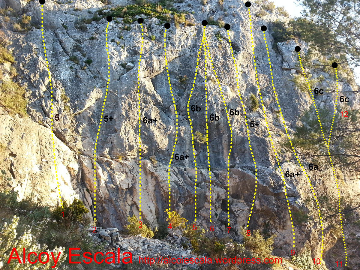 Este sector tiene desde grado 5 hasta 6C, en este sector se encuentra una de las vías mas largas unos 40 metros.