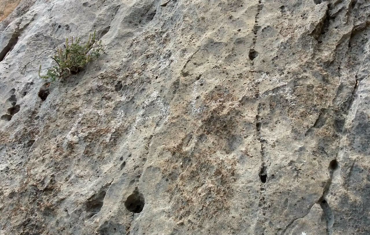 Nombre de la vía picado al comienzo de la misma.