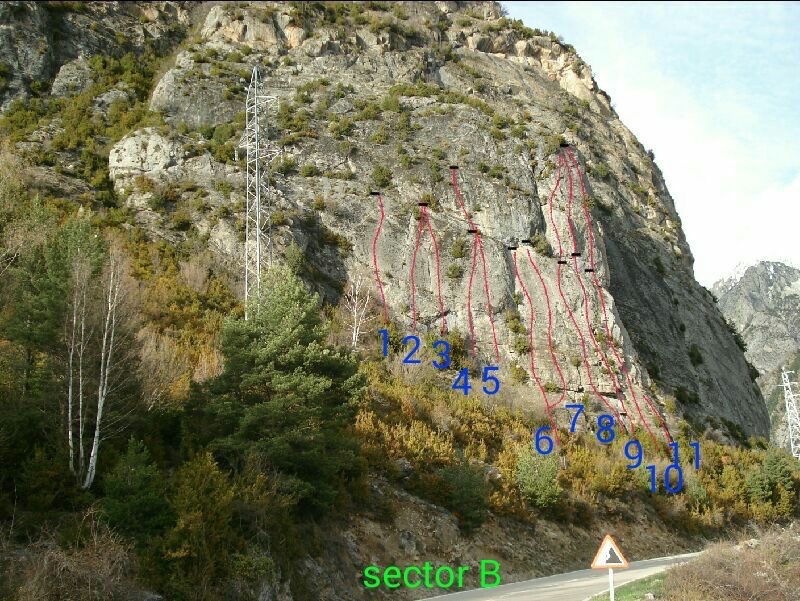 1- Al truyo que es lo tuyo 6a 2- Solo para yayos V+ 3-Dedo muerto 6b 4- Nais ti tain / tiempo de te 6b 5- Espolon cascorro 6a+ 6- Vainilla V+ 7- Oreja de oso 6a+ 8-Edelweis L1 V+ (semiequip) L2 6a 9- Mano blanca 6a+ (semiequip) 10- Mano Sangrante 6a+ (limpia) 11- Espolón zeus L1 IV+ L2 6b+ 12- variante espolón V+