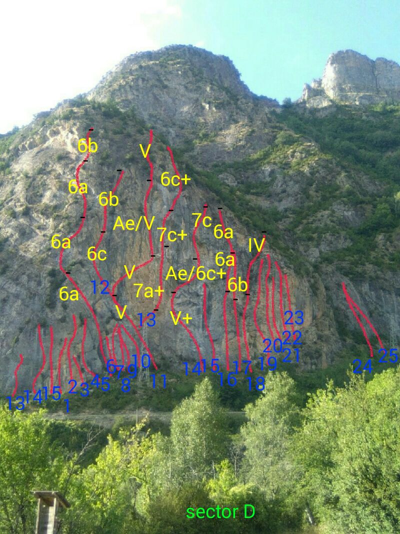 Forronias sector D 1- Kikarron 7b 2- Alta tensión 6c+ 3-Panticosa es otra cosa 6a 4- Terror verde 6b+ 5- Escorpio L1 6a L2 6a l3 6b L4 6a 6- M1 6b+ 7- M2 6b+ 8- M3 6a 9- M4 6a 10- M5 6a 11- Virgo L1 V+ L2 V+ L3 Ae L4 IV+ 12- No toques a mi abuela 13- Panticutos en acción 14- Ojo al ciego L1 V+ L2 6a (Ae) 15- Jacetania 7b 16- Poli Maeso 6a Nueva- L1 V+ L2 6c+? Nueva- 6a+ 17- Libra 6b 18- Piscis 6b 19- Autobiescas 7b 20- Viaje especial 6b+ 21- De bodorrio por Logroño 22- Lo macho mairal 7a 23- Treintañitis 7a 24- Tauro 6a 25- Sagitario 6a