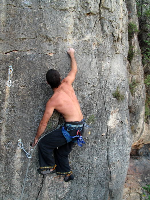 Lluïso (yo mismo) disfrutando la vía y la escalada como hacía tiempo que no lo hacía :-)