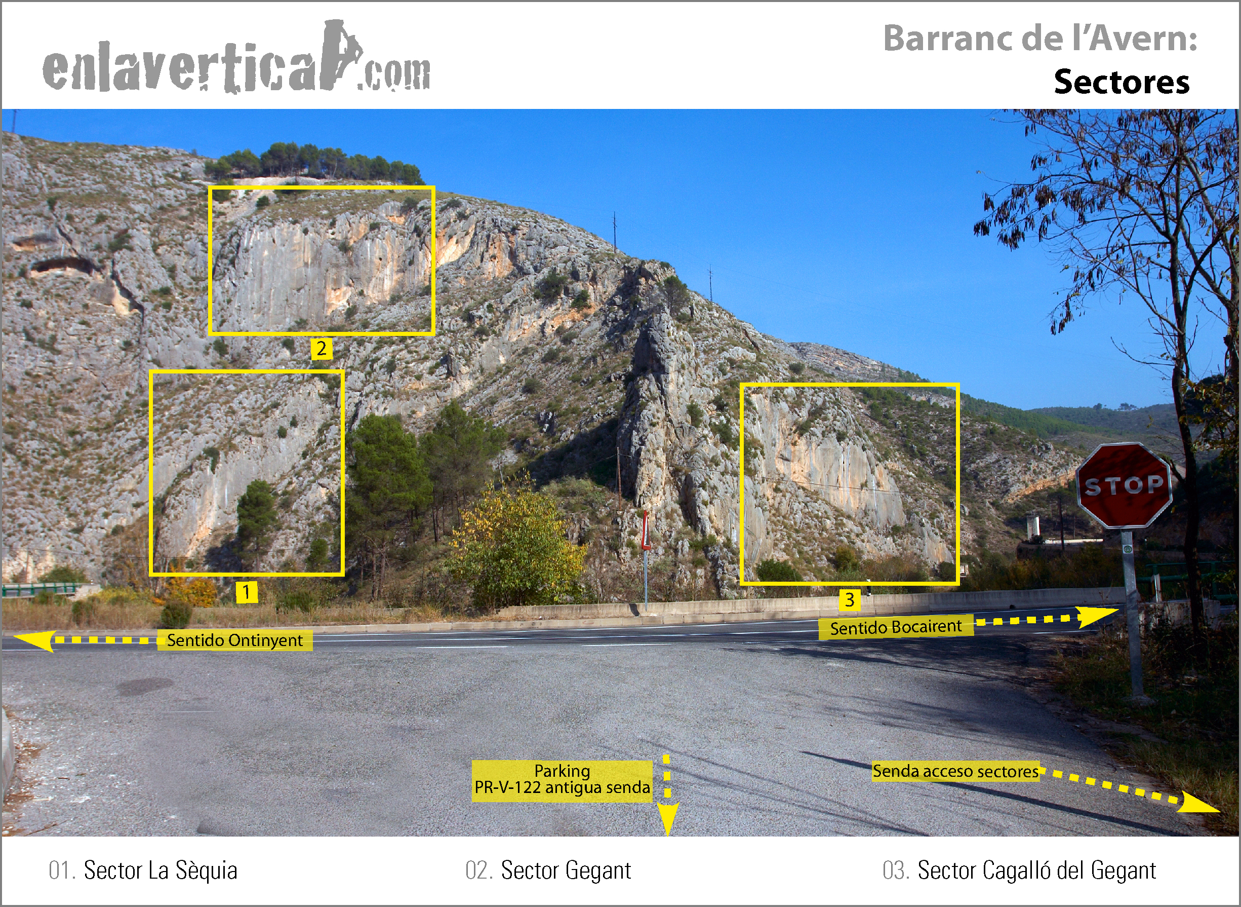 Reseña de la localización de tres sectores del Barranc de l'Avern a la izquierda de la carretera Ontinyent - Bocairent, sentido Bocairent