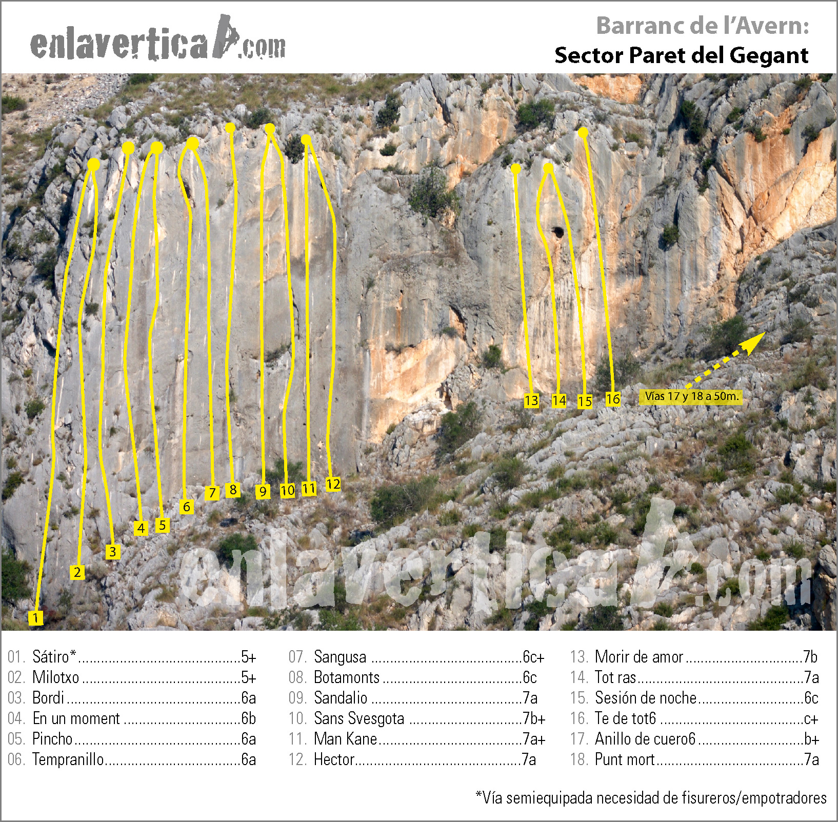 Reseña del sector Paret del Gegant de la escuela el Barranc de l'Avern.