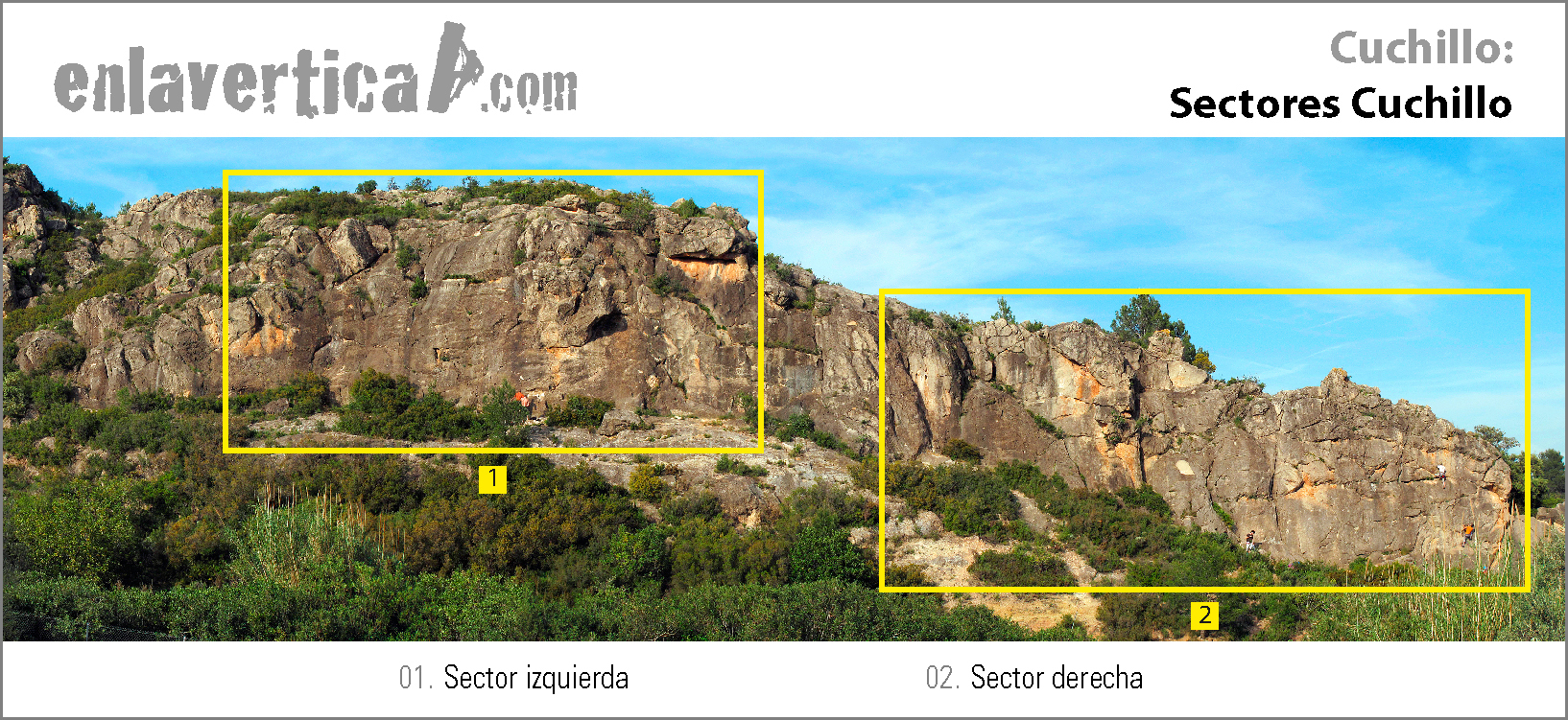 Reseña de los sectores de la escuela de escalada de Cuchillo.