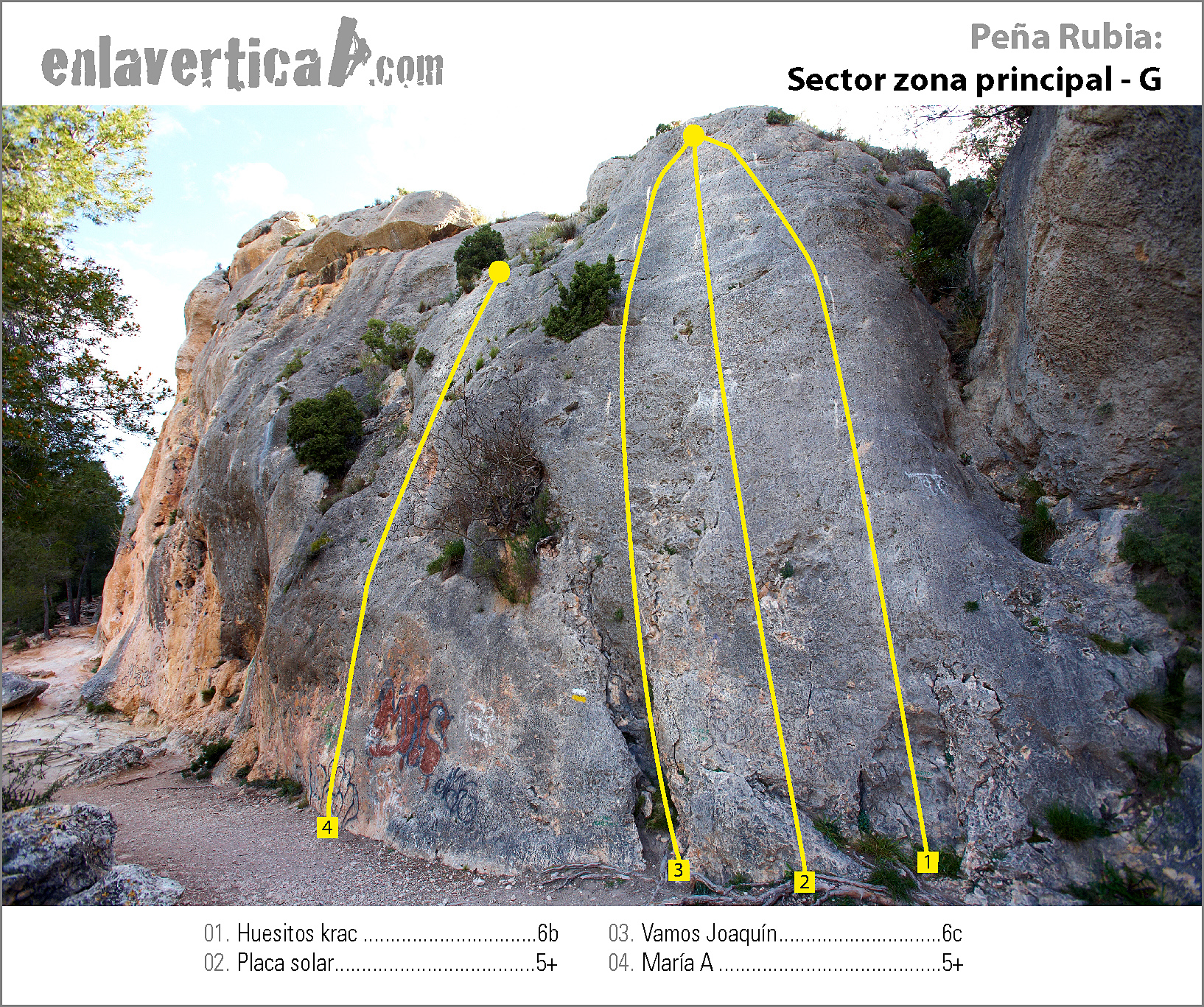 Reseña del sector zona principal G de la escuela de escalada Peña Rubia
