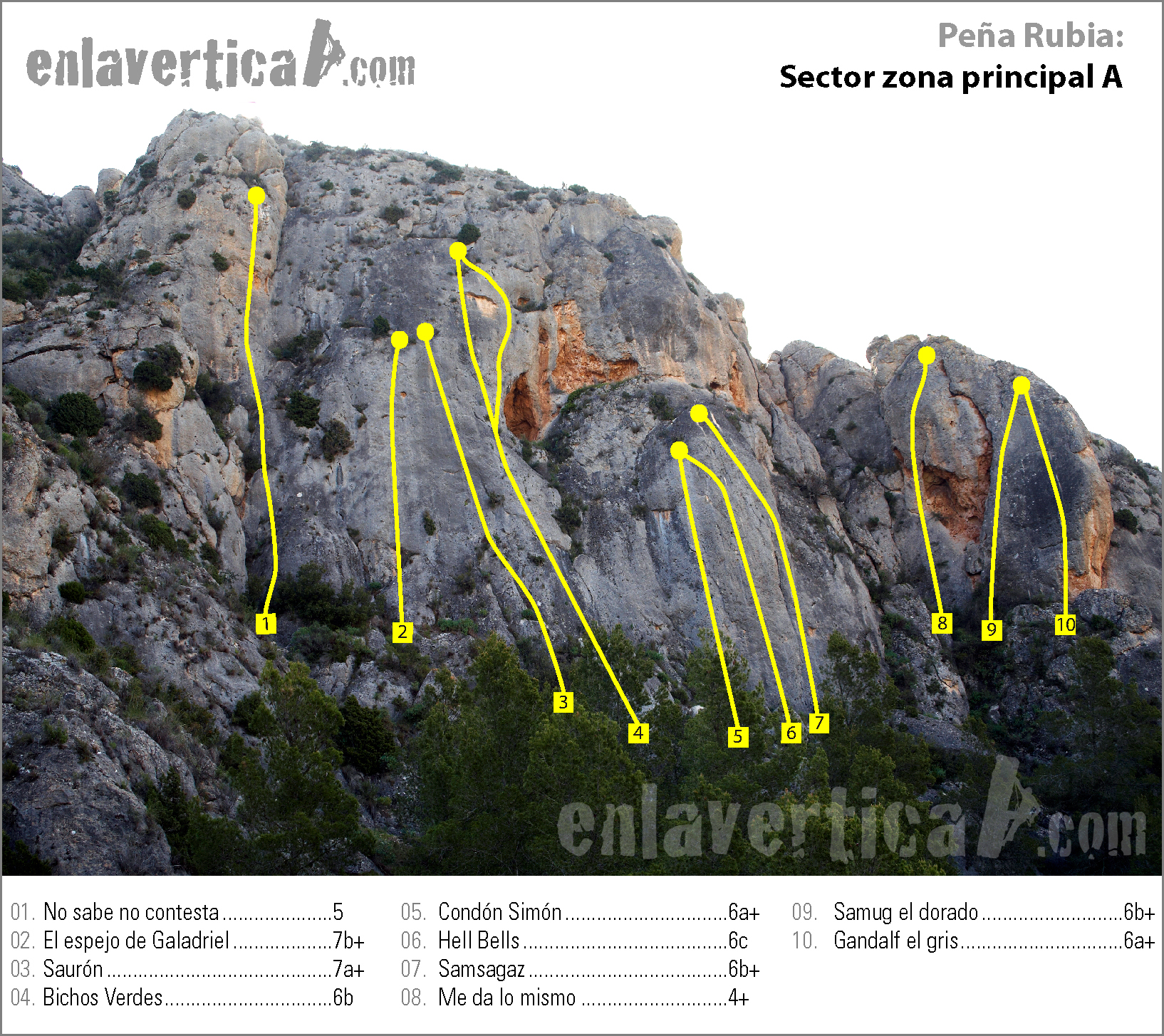 Reseña de la zona principal A/B de la escuela de escalada Peña Rubia