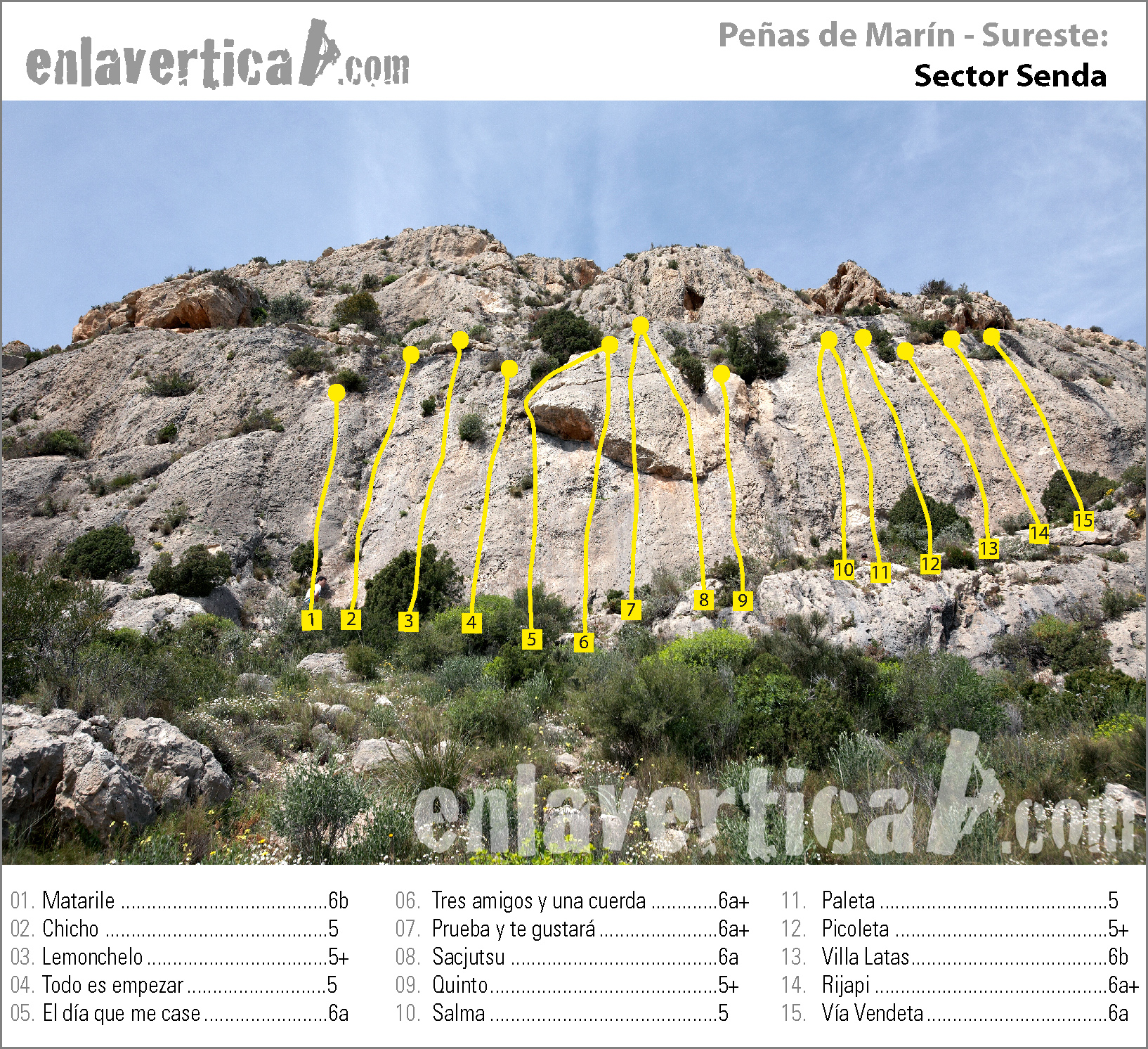 Reseña del sector Senda de la escuela de escalada Peñas de Marín