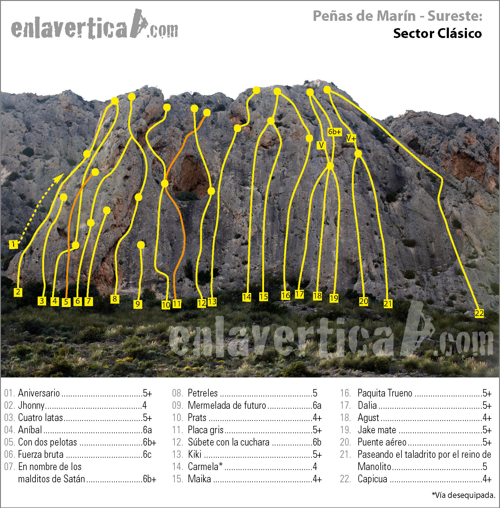Reseña del sector Clásico de la escuela de escalada de Peñas de Marín
