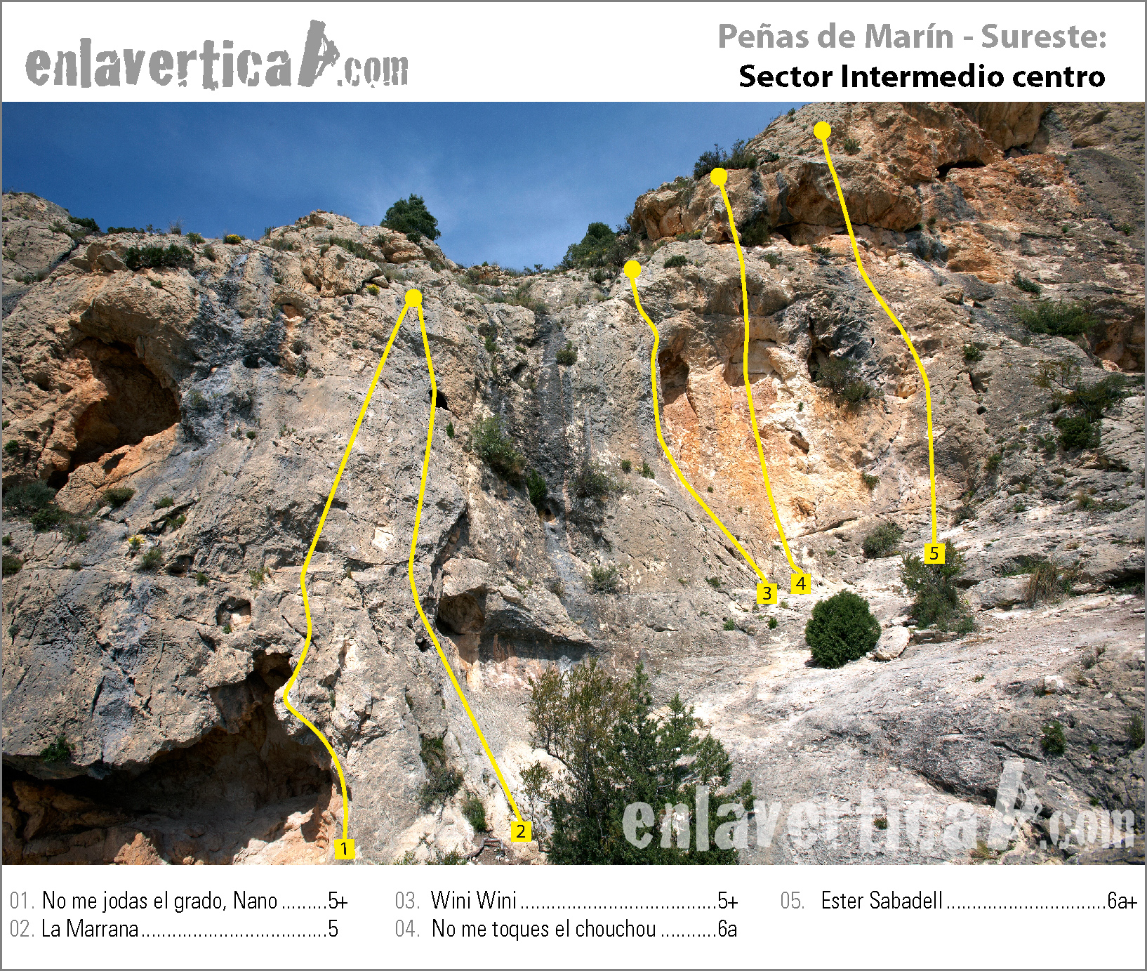 Reseña del sector Intermedio centro de la escuela de escalada de Peñas de Marín.
