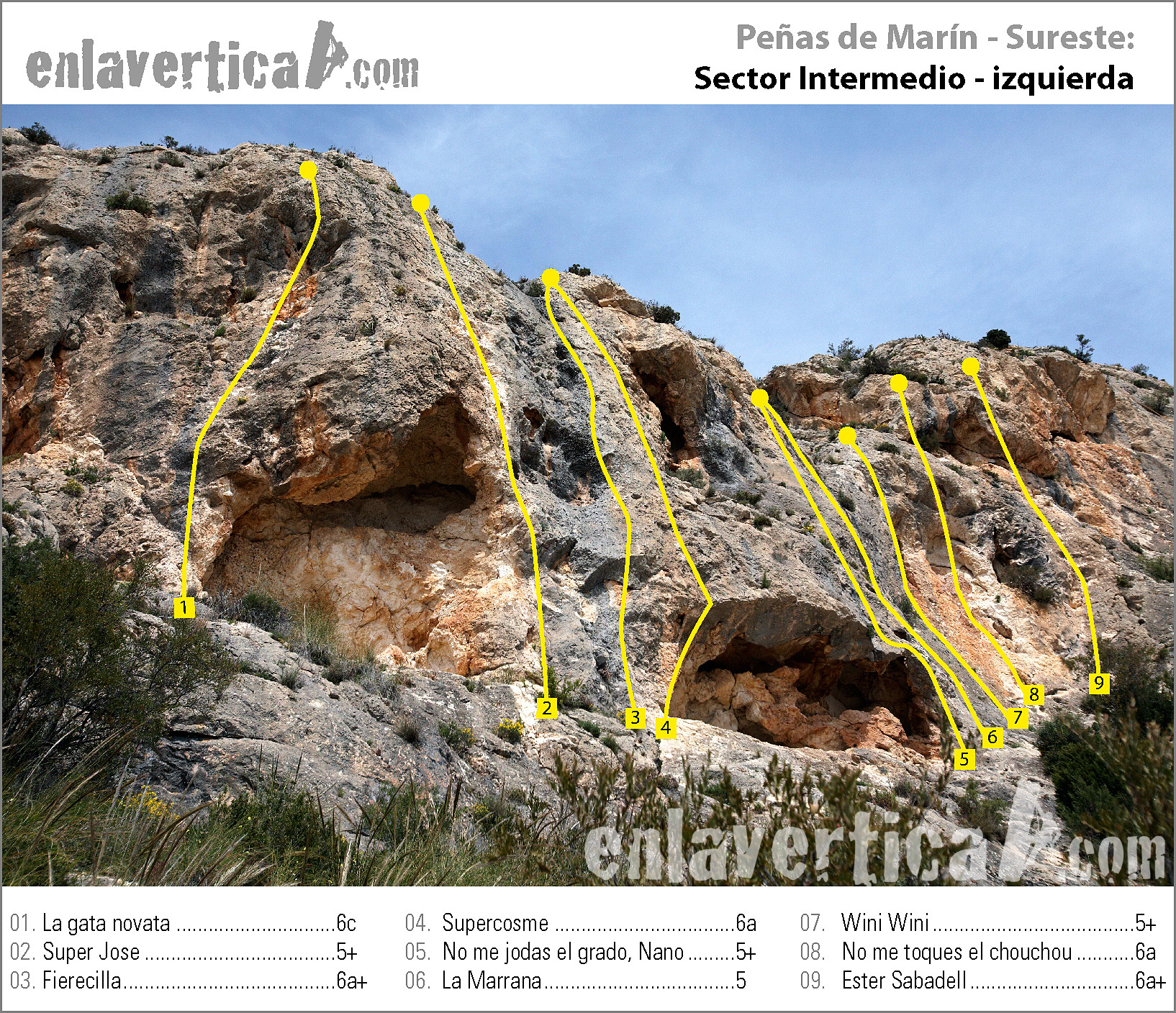 Reseña del sector Intermedio izquierda de la escuela de escalada Peñas de Marín.