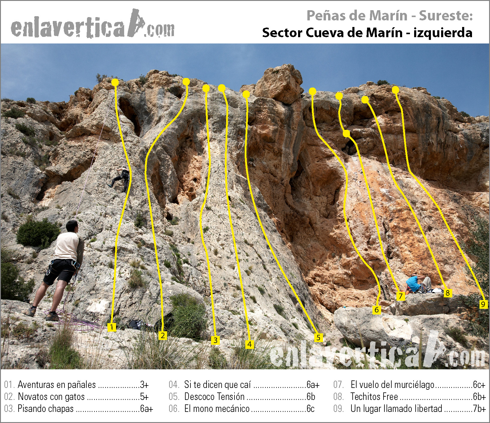 Reseña del sector Cueva de Marín izquierda de la escuela Peñas de Marín.