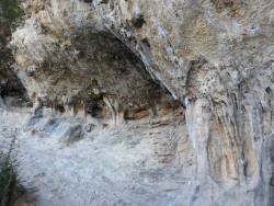 Cueva donde predomina el grado alto y la vía dura, desplomes, chorreras y hasta algún bidedo picado; sombra a partir de mediodía, al sol puedes morir...